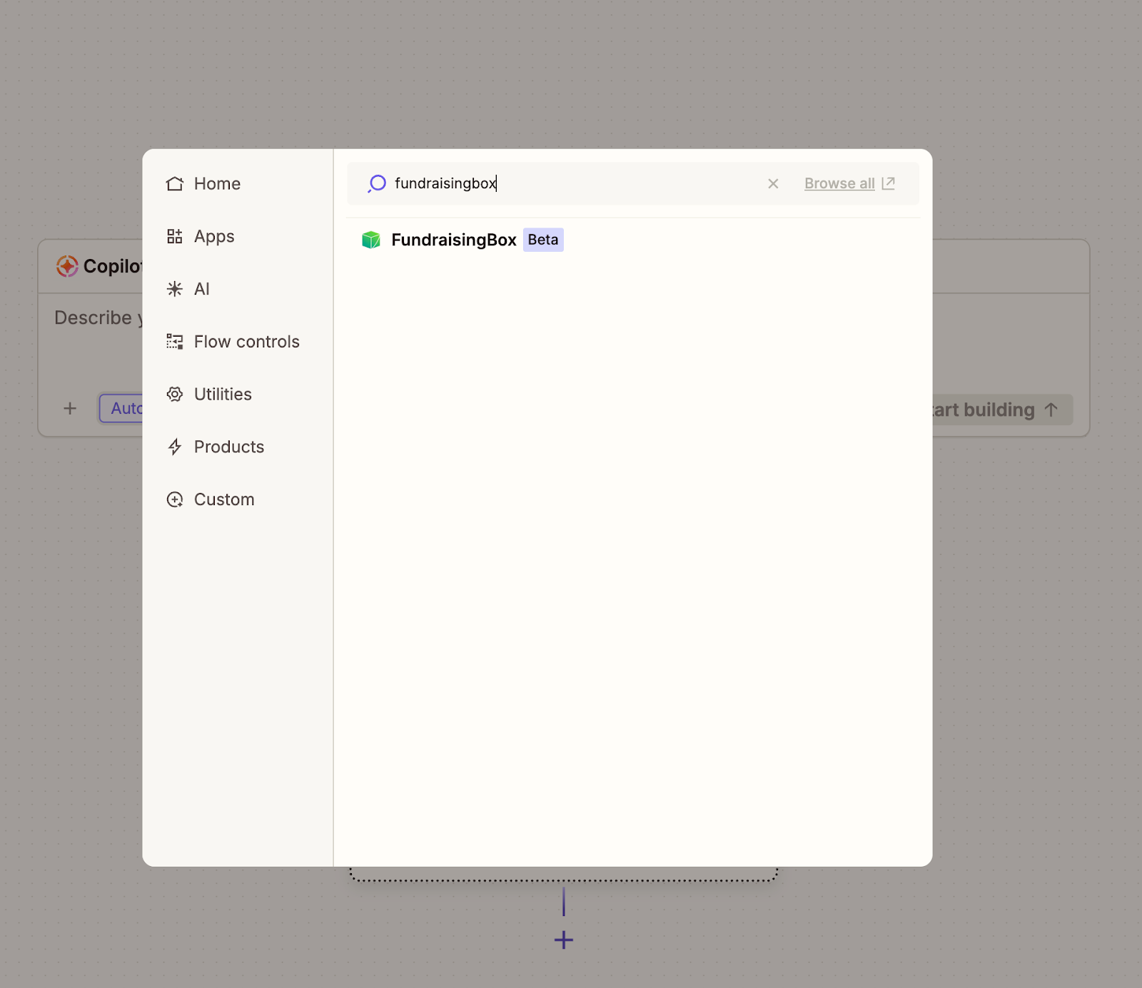 - Wählen Sie als App "FundraisingBox (Beta)" aus.