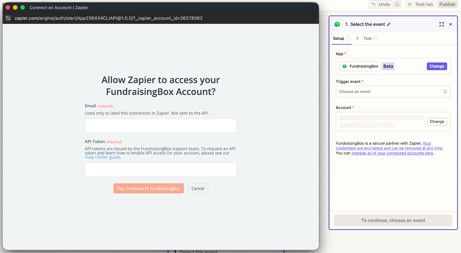 Die Einrichtung erfolgt initial in der FundraisingBox und anschließend in Zapier.